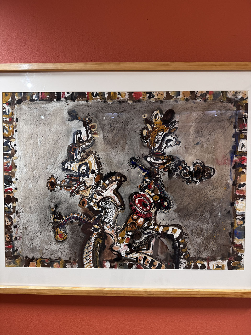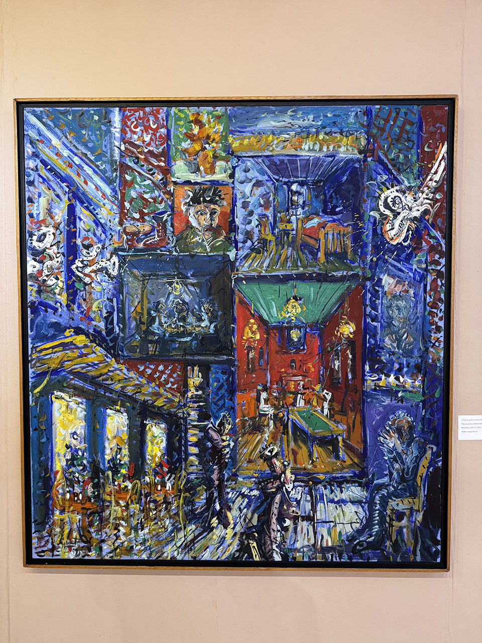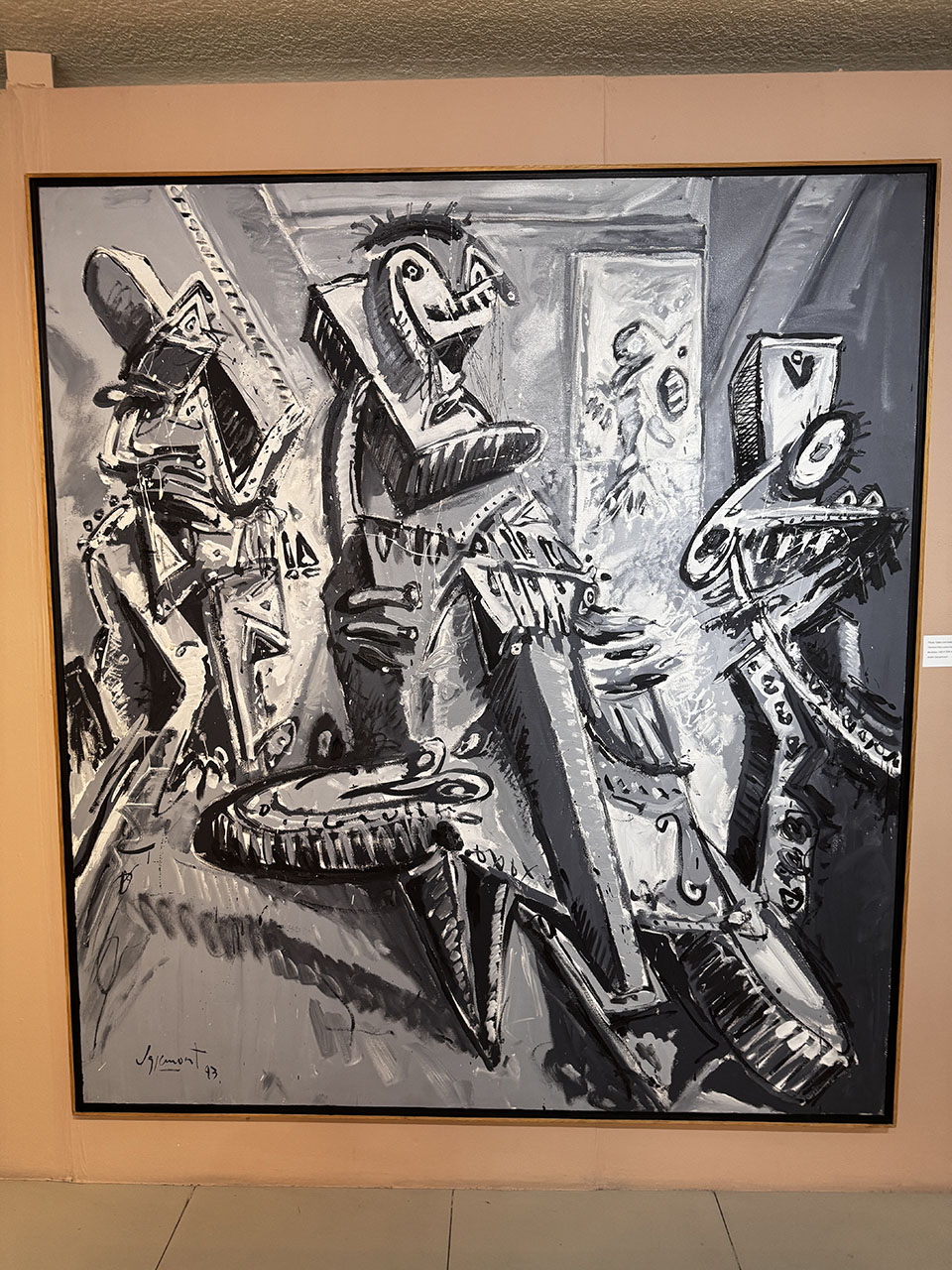 En sus escenas pictóricas habitan bares bulliciosos, conciertos nocturnos y músicos capturados en el instante preciso de la improvisación. Duetos y cuartetos, saxofones que parecen vibrar, contrabajos que se expanden en el lienzo. Sus trazos, dinámicos y enérgicos, no describen: interpretan. Los contrastes cromáticos —intensos, eléctricos— evocan las disonancias, las variaciones rítmicas y la libertad propia del jazz.